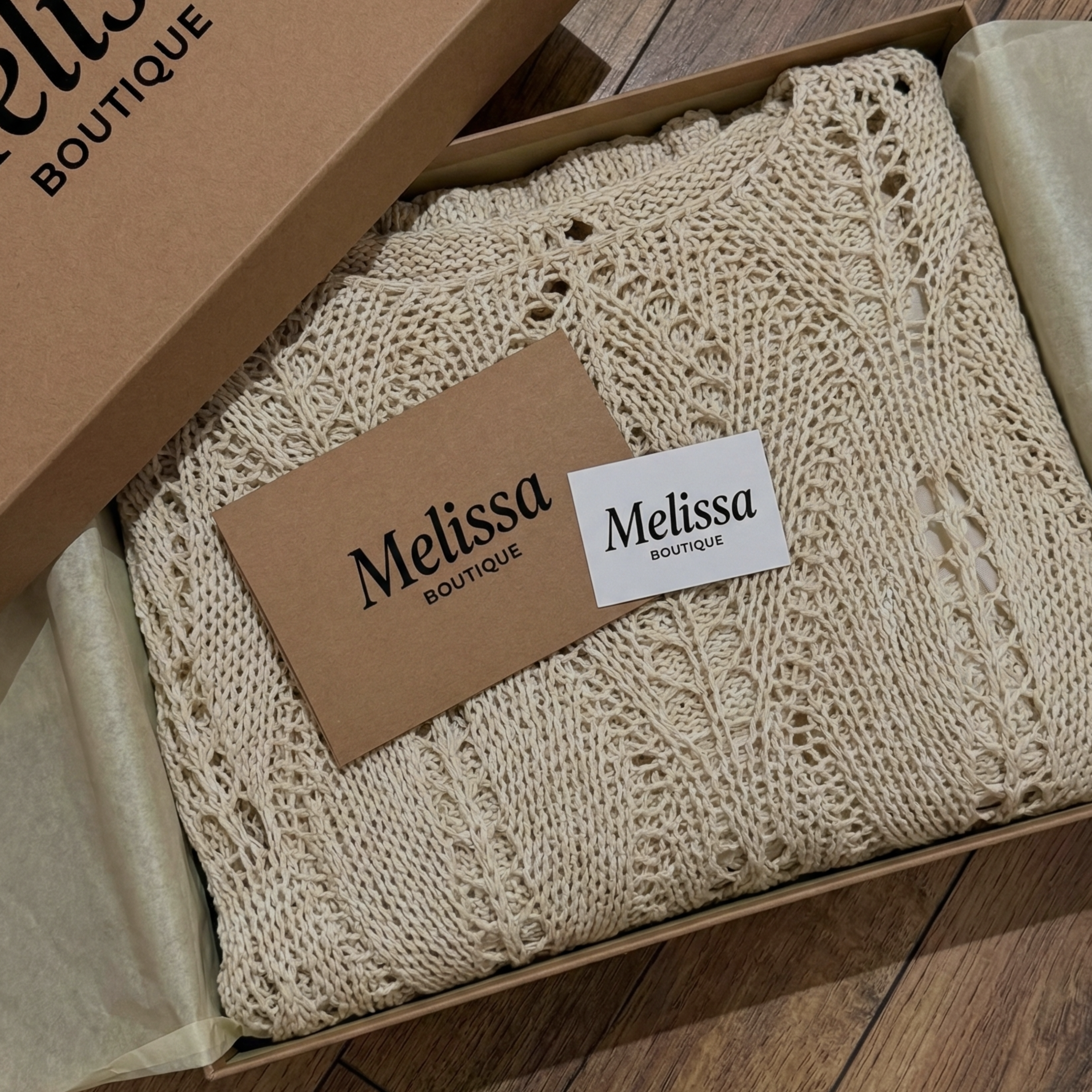 Each piece of clothing comes in a Melissa Boutique cotton bag and eco-friendly packaging. We also include free stickers with every order!