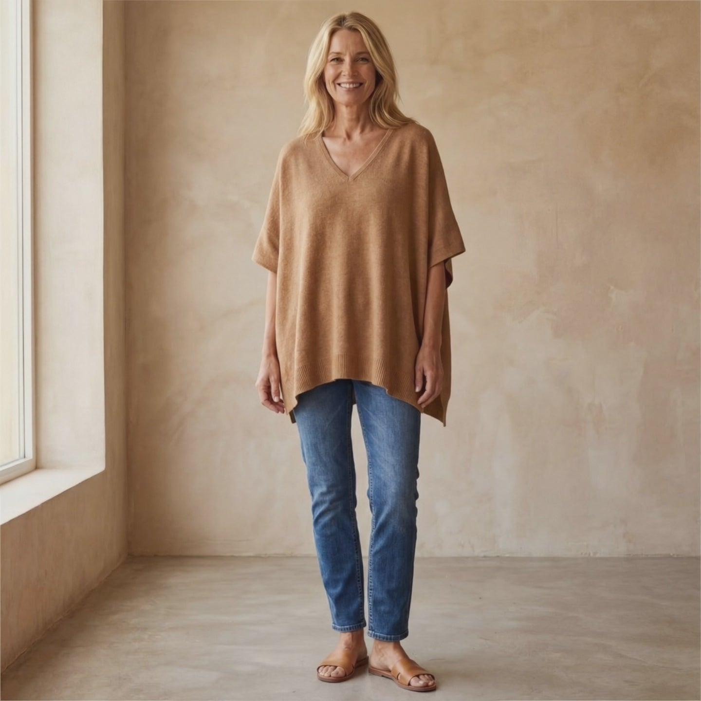ERICA - V Neck Loose Fit Solid Poncho Sweater