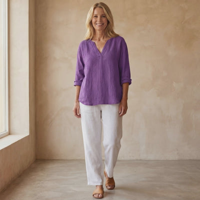 The Ledama Casual Linen Shirt showcases a soft V-neckline and relaxed long sleeves, made from breathable linen with a naturally textured surface. Its loose, flowing shape offers an easy, comfortable fit that moves effortlessly with you. A timeless piece that brings relaxed elegance and understated charm to your wardrobe.
